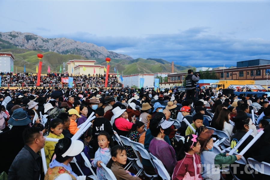 圖為啟幕儀式現(xiàn)場座無虛席,為囊謙縣群眾帶來一場跨越地域的文化盛宴與視聽體驗(yàn)。攝影:龍真多吉