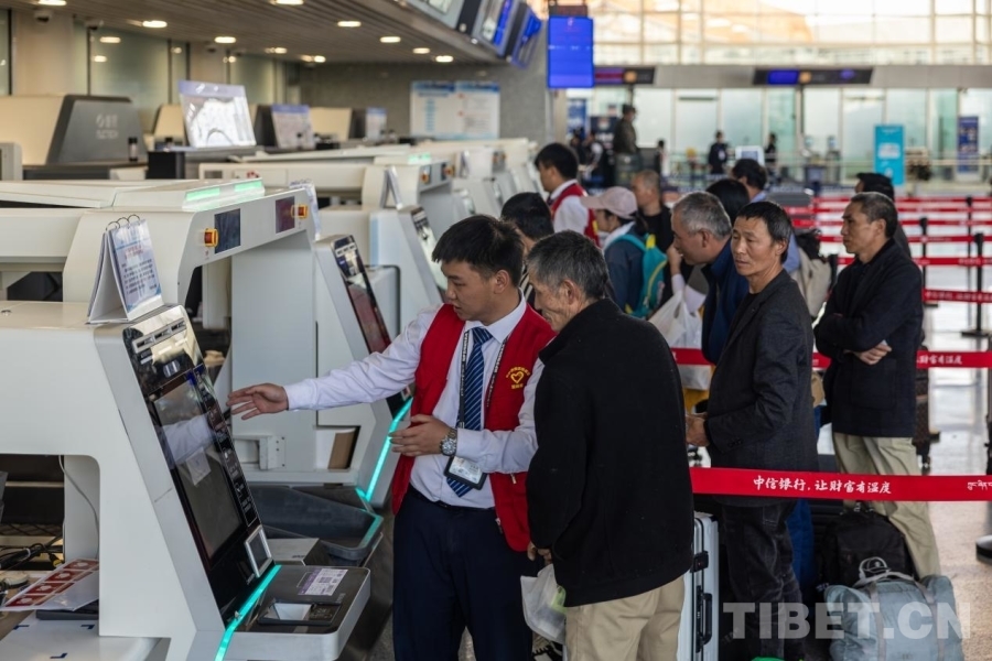圖為機(jī)場志愿者幫助旅客辦理手續(xù) 民航西藏自治區(qū)管理局供圖