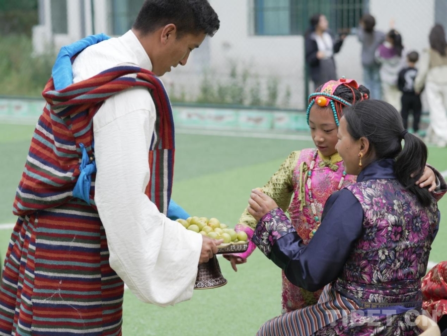 大家圍坐交流,家長們細(xì)致講述藏裝配飾的象征意義,孩子們認(rèn)真聽著縣群團(tuán)工作部老師講述節(jié)日傳說。在服飾走秀環(huán)節(jié),藏族少女白瑪央吉牽著妹妹的手款款走來,盡顯藏族服飾的華美與端莊;鍋莊舞表演時,人們手拉手,舞步踏響同一節(jié)奏。品嘗特色美食時,亞東李子、奶渣、鮭魚罐頭等特色美食登臺亮相。支教團(tuán)成員與家長化身“美食代言人”,盡情分享美食,樂在其中。