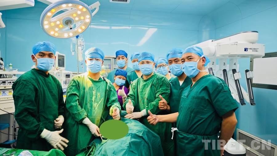 圖為那曲市人民醫(yī)院手術(shù)室內(nèi)成功完成全球首例海拔4500米以上5G遠(yuǎn)程機器人手術(shù)