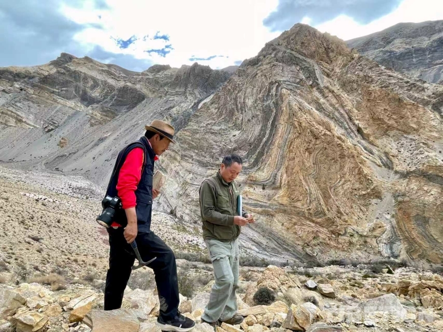 圖為俞江(左)在高原勘測地質(zhì)