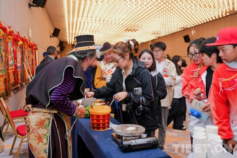 活動(dòng)現(xiàn)場(chǎng)還設(shè)置了茶歇區(qū)、展覽閱讀區(qū)和非遺體驗(yàn)區(qū)。嘉賓們品嘗工布阿拉酒與藏式茶點(diǎn),欣賞青年藝術(shù)家畫作和林芝主題圖書,并親身體驗(yàn)藏香制作、藏文書法、藏紙拓印等非遺項(xiàng)目,多維度感受林芝文化的生機(jī)與魅力。