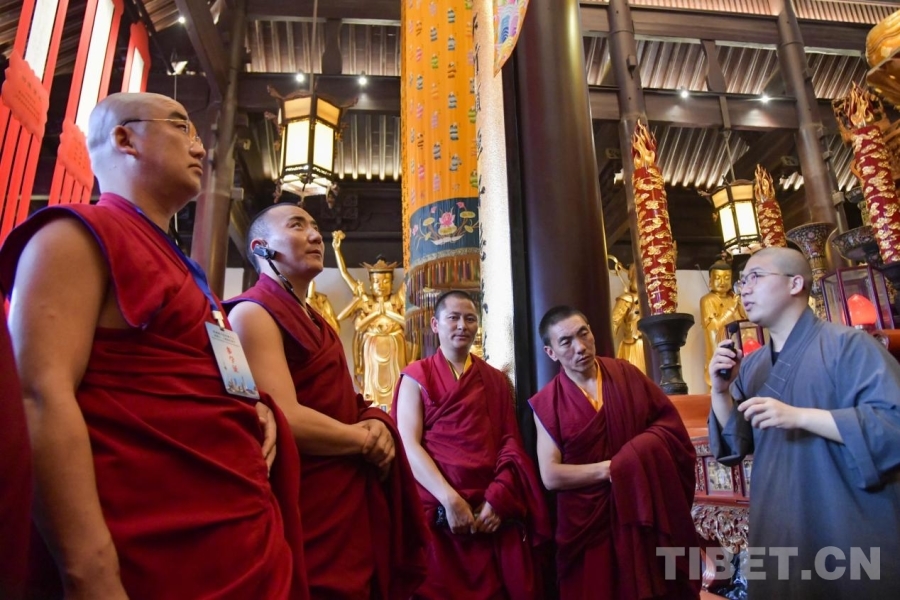 資料圖:西藏佛學院師生與玉佛禪寺法師交流藏傳漢傳佛教文化
