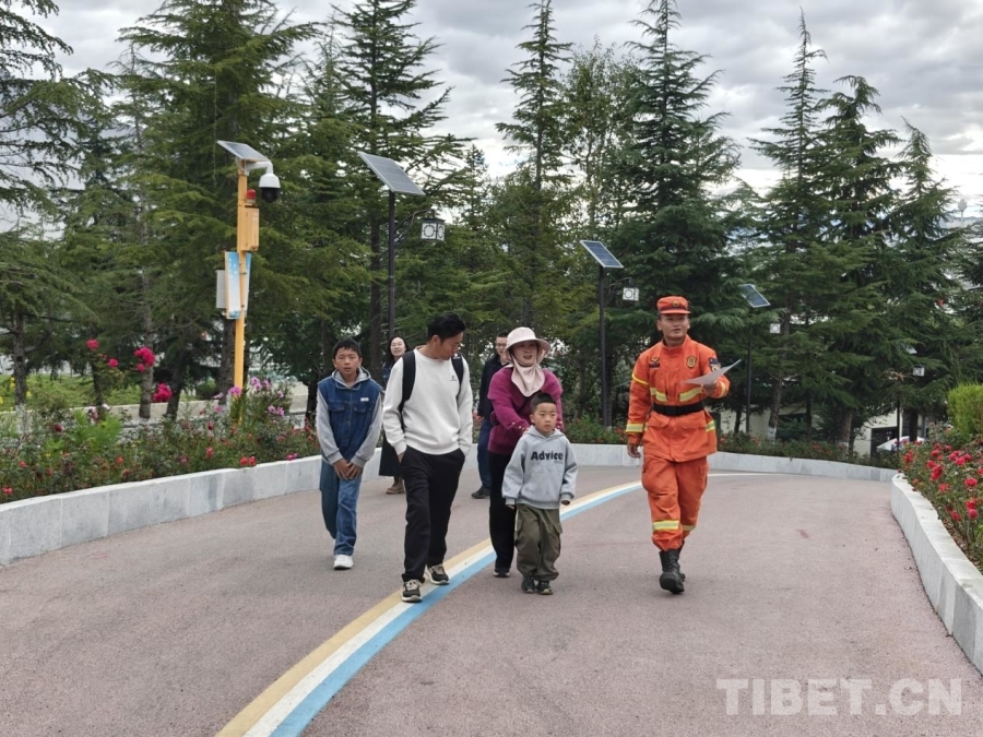 圖為雙節(jié)期間森林消防員在拉薩南山公園組織開展森林防火宣傳活動,旨在增強游客防火意識,共同守護綠色家園 攝影:丁浩