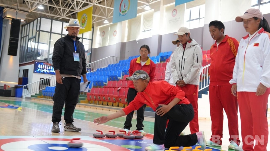 旱地冰壺賽場(chǎng)上,運(yùn)動(dòng)員分為黃、紅兩隊(duì)展開較量?!跋乱唤M,準(zhǔn)備比賽!”賽事組委會(huì)組長、那曲市特殊教育學(xué)校教師土旦格桑用手語向候場(chǎng)的隊(duì)員發(fā)出指令。比賽中,隊(duì)員們不斷調(diào)整發(fā)力角度,團(tuán)隊(duì)之間積極溝通、默契協(xié)作,現(xiàn)場(chǎng)緊張有序,運(yùn)動(dòng)員們輪番上陣,在投擲線后凝神屏息,專注瞄準(zhǔn)與投擲。每一位參賽者都克服了身體上的困難,以頑強(qiáng)的意志投入比賽,他們的出色表現(xiàn)贏得了觀眾的連連贊嘆。