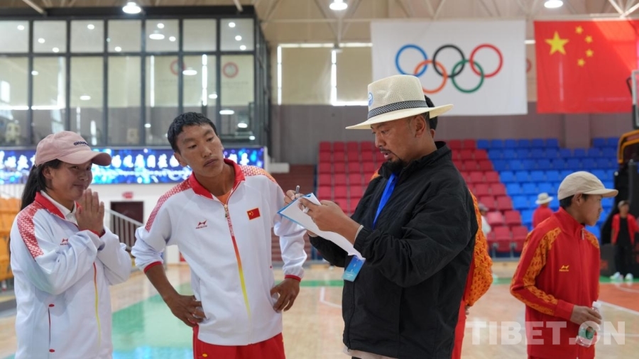 圖為土旦格桑在比賽現(xiàn)場(chǎng)進(jìn)行計(jì)分