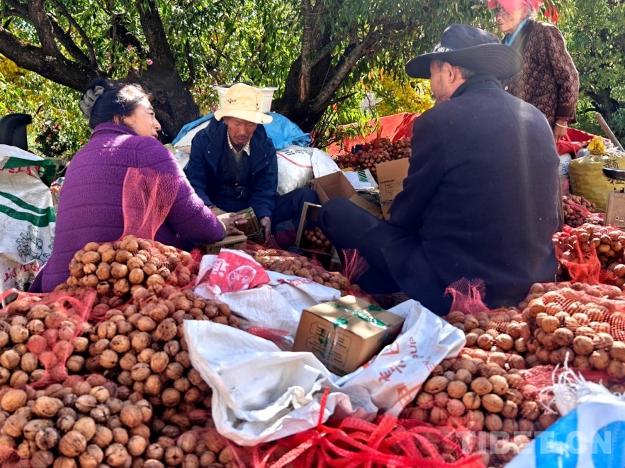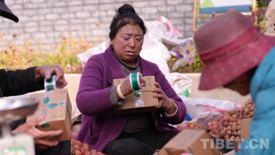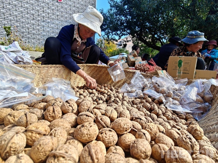 中國(guó)西藏網(wǎng)訊 10月21日,在西藏山南市加查縣安繞鎮(zhèn)拉崗村的千年核桃林內(nèi),村民們正忙碌地將今秋采收的核桃打包,準(zhǔn)備通過(guò)電商平臺(tái)發(fā)往全國(guó)各地的顧客手中。