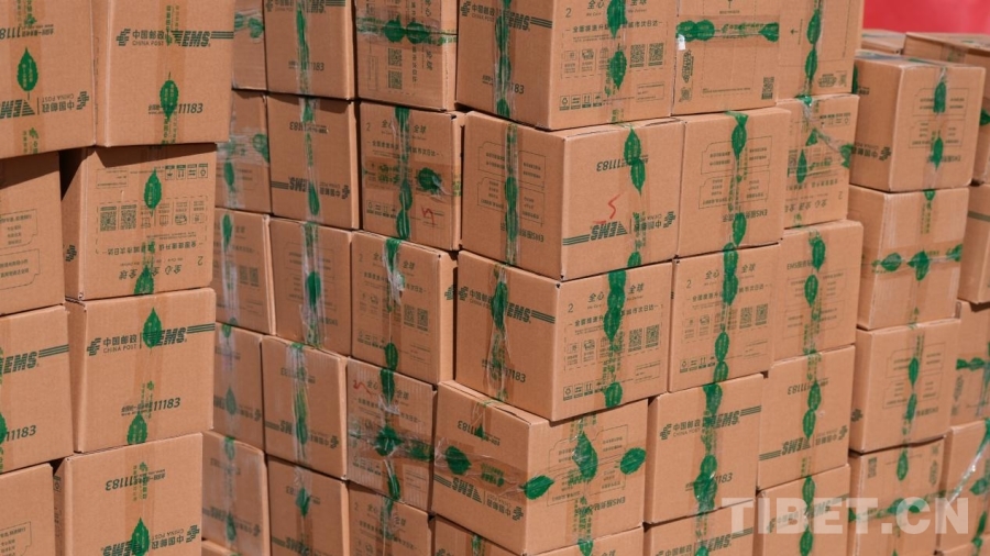 圖為已完成打包流程、即將發(fā)往全國(guó)各地的核桃包裹