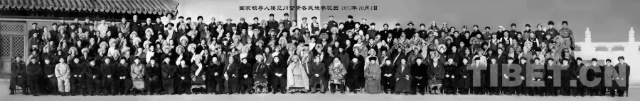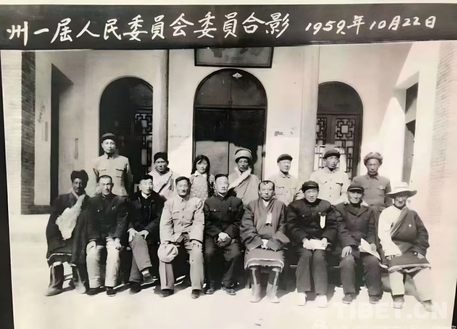 圖為1959年10月,米福堂(前排右二)當(dāng)選玉樹州第一屆人民委員會(huì)委員