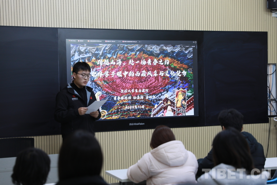 圖為孫嘉浩同學分享此次赴藏的親身見聞。攝影:畢然