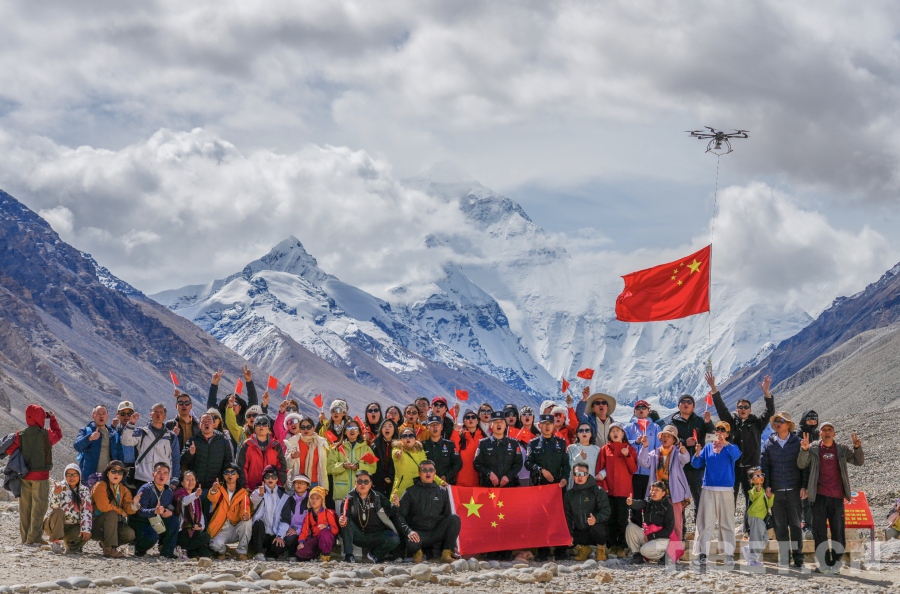 圖為珠峰邊境派出所民警在珠峰腳下和游客歡度2025年國(guó)慶節(jié) 攝影:葉軼