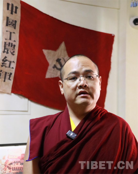 “這些紅色文物是慢慢累積起來的,甲央活佛總是跟我們說,紅色文物陳列室里的文物保存在寺院,但都是國家的。”長青說,“我們作為中華人民共和國的公民,作為一個僧人,在黨和國家的領導下,我們必須要愛國愛教。”
