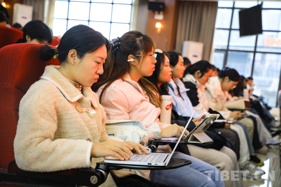 圖為學(xué)員代表在認真做筆記 攝影:龍真多吉