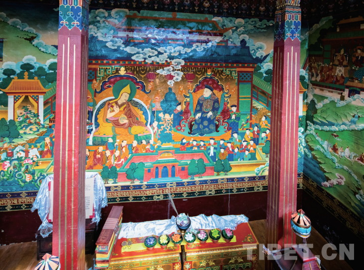 圖為五世達賴喇嘛故居內的壁畫——清順治皇帝接見五世達賴喇嘛