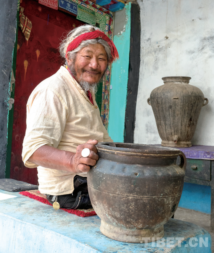 《守墓人今安在?》《次仁烱寺——晉美林巴的歸隱地》《雪康莊園——老莊園時光再現(xiàn)》《“神仙故鄉(xiāng)”的陶藝世界》等都是我非常喜歡讀的章節(jié)。通過這些章節(jié),可以了解傳說中始于吐蕃時期的守墓人制度,以及“現(xiàn)代守墓人”強巴曲桑老人的生活:“到藏王墓19年來,他幾乎沒有回過家中,雖然白日村幾乎就在藏王墓能看見的位置……每天早晨,要圍繞陵區(qū)小走一圈,觀察墓地上是否有裂縫,是否有塌方的痕跡”。雪康莊園朗生的后代、70歲的維色老人怡然自得的笑容,“神仙故鄉(xiāng)”堆巴村77歲的制陶匠人次仁古桑的微笑,堆巴諧欽傳承人格桑老人含蓄的笑容,令人難忘。他們刻滿歲月風霜的臉上綻放的質樸笑容,如陽光般,充滿對陌生人暖暖的善意。他們的笑容與故事具有直抵人心的感染力,可以感受到他們內心的安寧以及對當下生活全然滿足的幸福,同時也可以讓人在紛擾的現(xiàn)代生活中尋得內心的平靜與力量。