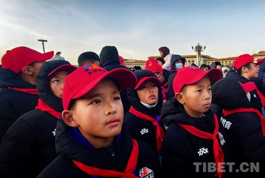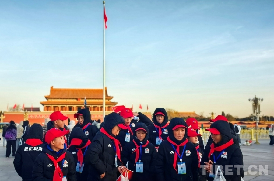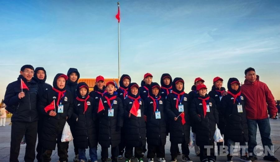 “祝祖國(guó)繁榮昌盛!扎西德勒!”12月26日清晨的天安門(mén)廣場(chǎng),來(lái)自西藏自治區(qū)那曲市色尼區(qū)青少年足球隊(duì)的少年們?cè)趧倓傆?yáng)升起的五星紅旗下,一起大聲為祖國(guó)送出衷心的祝福。