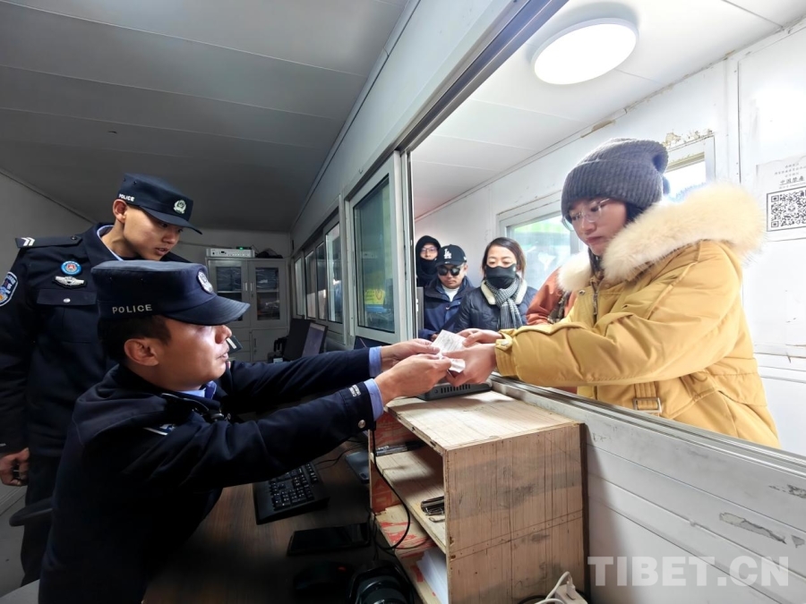 圖為民警與游客在珠峰景區(qū)交談