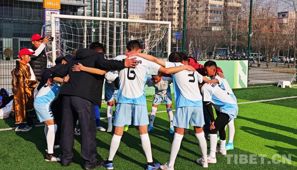 盡管正值寒冬,西藏的足球少年們已經(jīng)迫不及待地?fù)Q上球服開始跑動(dòng)熱身。帶隊(duì)教練和球員們圍成圓圈,團(tuán)抱在一起,大喊加油!