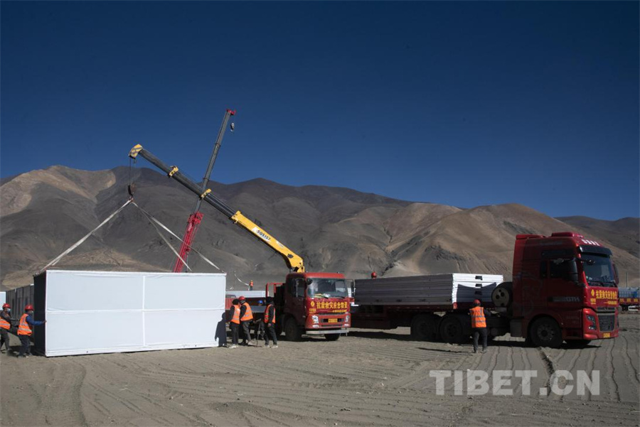 圖為地震發(fā)生第三日,在定日縣長所鄉(xiāng)森嘎村全國各地支援而來的活動板房開始搭建,10分鐘一間的“中國速度”正在這里上演(攝于2025年1月9日) 攝影:趙振宇