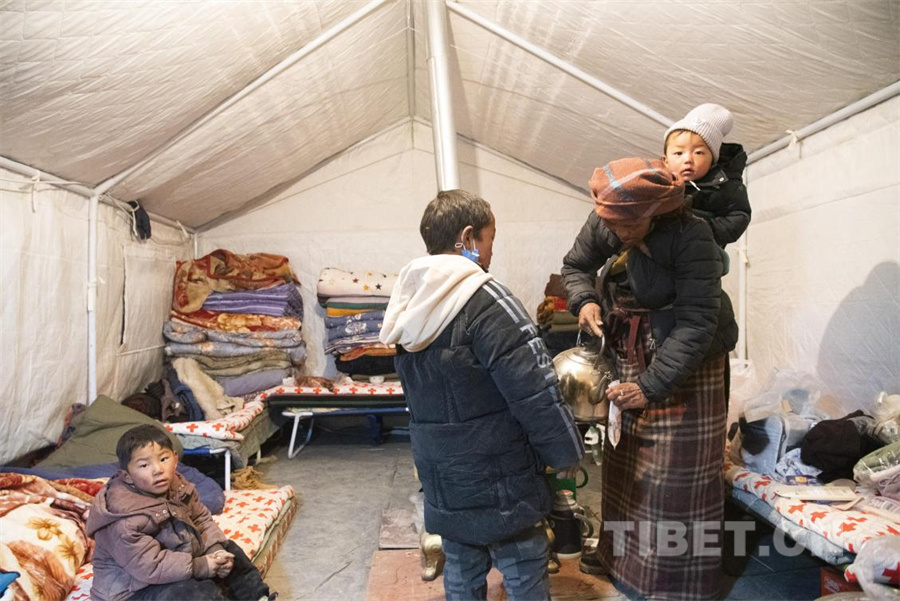 圖為圖為地震發(fā)生第四日,在定日縣長所鄉(xiāng)雜村受災群眾安置點內(nèi)受災群眾取暖、照明、過夜均有保障,當天夜晚氣溫達到零下二十度(攝于2025年1月10日) 攝影:趙振宇