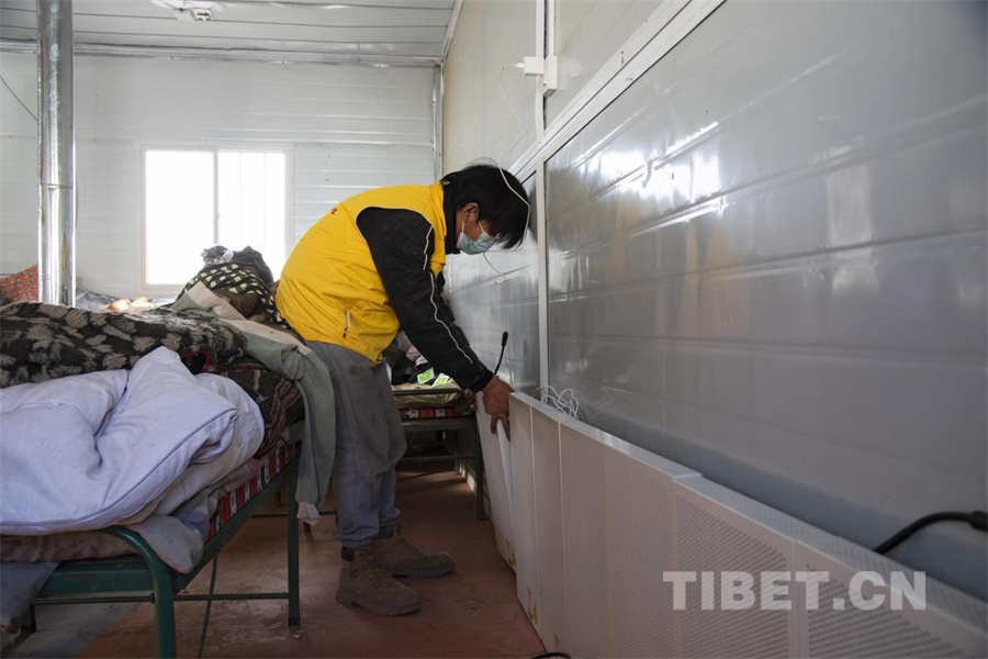 圖為地震發(fā)生第五日,在定日縣長所鄉(xiāng)古榮村受災群眾安置點內(nèi),工作人員正在安裝電暖器 (攝于2025年1月11日) 攝影:趙振宇