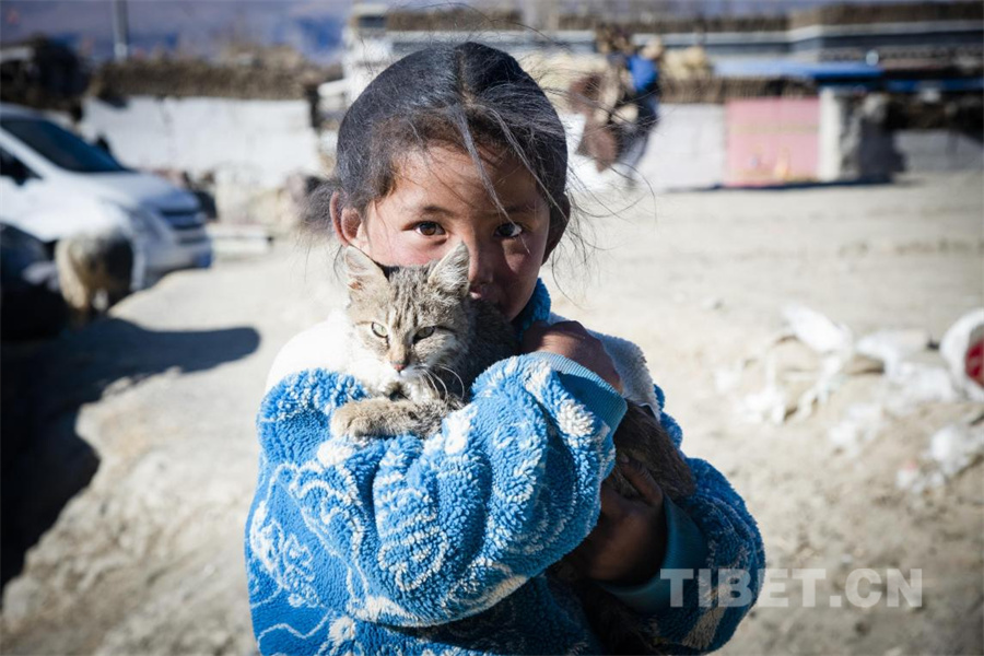 圖為在定日縣受災群眾安置點內(nèi),一名小女孩在冬日里抱起一只小貓,給予小貓溫暖,也傳給我們力量。(攝于2025年1月10日) 攝影:趙振宇
