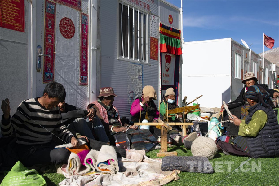 圖為定結縣郭加鄉(xiāng)白堆村村民在受災安置點前紡織羊毛,大家已恢復正常生產(chǎn)生活秩序(攝于2025年2月27日)攝影:趙振宇