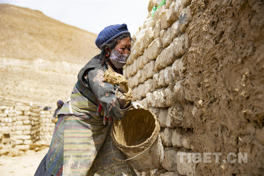 圖為定日縣曲洛鄉(xiāng)嘎白村的村民正在用中國鄉(xiāng)村發(fā)展基金會的10萬元資金修建畜圈。修建所需的材料都來自于受災村民自己坍塌的老房子的土磚,全村31戶村民每戶派出一名人員參與畜圈建設,每天會獲得150元的務工報酬(攝于2025年2月27日) 攝影:趙振宇