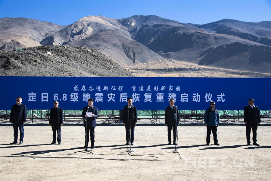 圖為定日縣6.8級地震8個整村推進村莊災后恢復重建項目啟動儀式在定日縣長所鄉(xiāng)古榮村舉行,標志著災后恢復重建工作啟動。(攝于2025年3月3日)攝影:趙振宇