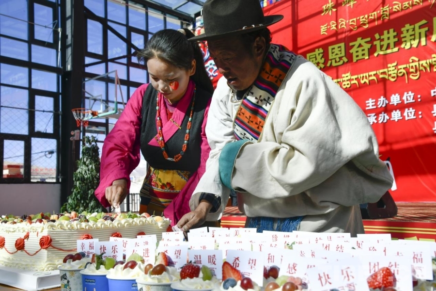 圖為定結(jié)縣郭加鄉(xiāng)村民切開了慶祝新居新生活的大蛋糕(攝于2026年1月6日) 攝影:趙振宇