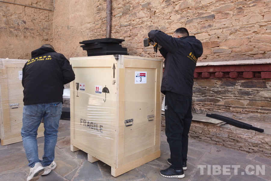 此次借展的敏珠林寺文物對(duì)于薩迦寺大展起到補(bǔ)充作用,讓展覽更加豐富。然而,文物“出差”并非“說走就走”,這些無價(jià)之寶的每一次移動(dòng)都伴隨著一個(gè)精密而嚴(yán)謹(jǐn)?shù)倪^程——文物點(diǎn)交,這是確保文物安全的重要環(huán)節(jié)。