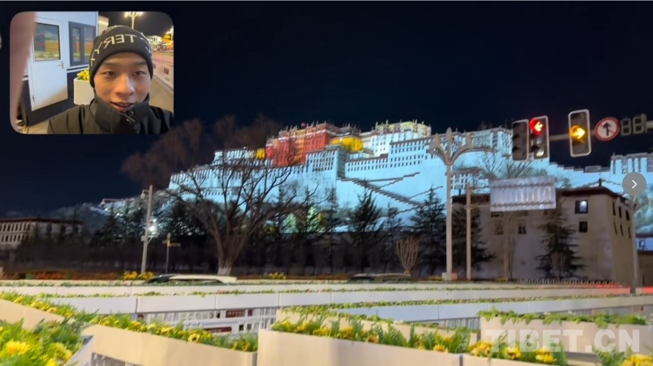 圖為關(guān)瑞忠與布達拉宮同框的視頻截圖。