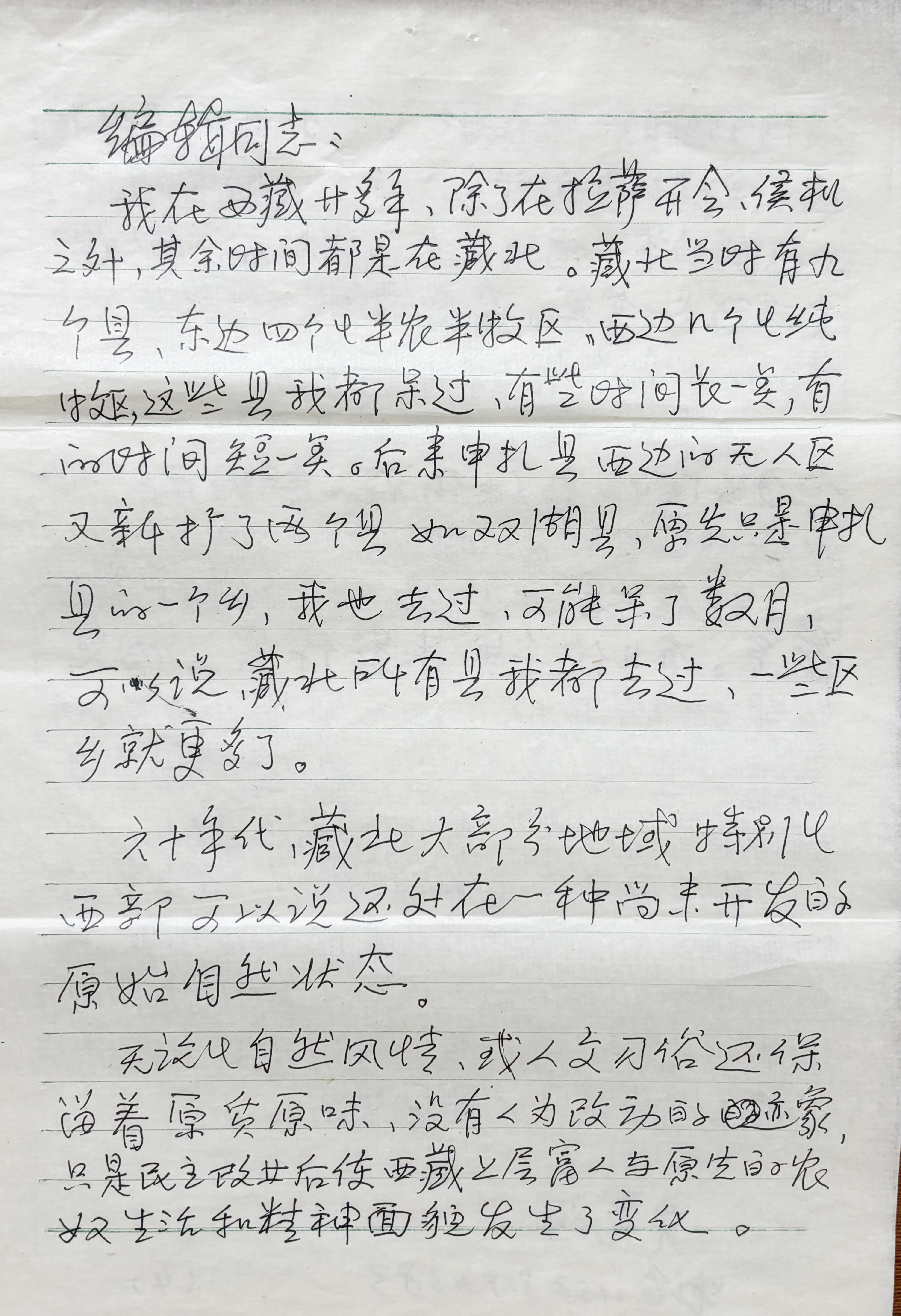 圖為讀者寫給《中國(guó)西藏》漢文版雜志編輯的信