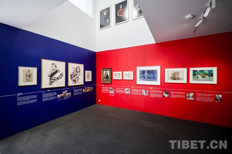 揭幕當(dāng)天,空間首展“垂直實驗:海拔0至8848——上海藝術(shù)家與青藏高原”同步亮相,首次系統(tǒng)呈現(xiàn)上海與青藏高原百年藝術(shù)文化交流史。展覽展出莊學(xué)本、陳逸飛、周春芽等13位上海籍或與上海淵源深厚的藝術(shù)家作品,通過文獻、作品與影像,構(gòu)建跨越時空的對話。莊學(xué)本1934年懷揣相機踏上“本土西行”之路,成為中國影像人類學(xué)先驅(qū);陳逸飛多次深入高原創(chuàng)作的四張素描手稿;周春芽1981年創(chuàng)作的一幅藏族婦女肖像,與多幅剪羊毛場景的手稿一起,帶領(lǐng)觀眾溯流而上,感受改革開放之初民族交往的時代氛圍。
