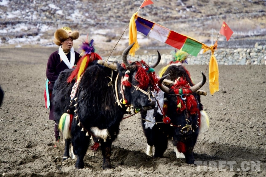 循聲而至的游客們,恰好撞見了這場高原春日里最盛大的農(nóng)事慶典。村民們身著節(jié)日盛裝,手捧潔白的哈達、象征吉祥的“切瑪盒”,牽著頭戴紅纓的耕牛,緩緩走向田野。這是西藏傳統(tǒng)天文歷算擇定的吉日,也是高原人家對豐收最美的愿望。