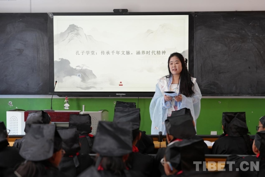 有一次,殷靚靚穿著漢服走進(jìn)課堂,飄逸的衣袂瞬間吸引力所有孩子的目光。看著孩子們滿眼的好奇,她和援藏團(tuán)隊(duì)的老師們萌生了新想法——依托山東儒家文化發(fā)源地的底蘊(yùn),在學(xué)校開(kāi)設(shè)中華傳統(tǒng)文化興趣班,建起“孔子學(xué)堂”。在這里,孩子們讀經(jīng)典、學(xué)禮儀,還和濟(jì)南的小伙伴同步開(kāi)展傳統(tǒng)文化活動(dòng),讓孩子們對(duì)千里之外的山東,多了一份更深的親近與向往。