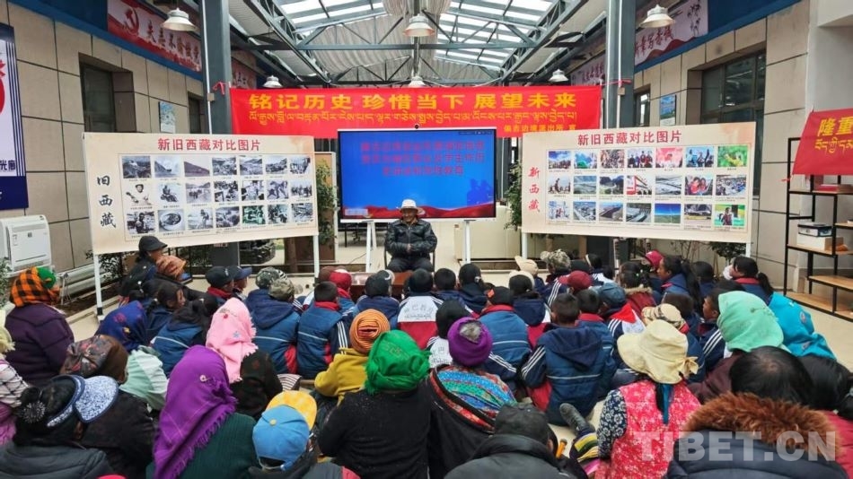 3月26日,在日喀則偏吉邊境派出所,以“銘記歷史 珍惜當(dāng)下 展望未來”為主題的系列紀(jì)念活動(dòng)舉行。民輔警們圍坐在一起,中間是79歲的老黨員朗康,經(jīng)歷了民主改革的他,正以自己的親身經(jīng)歷為派出所民警們講述那段黑暗的過往。