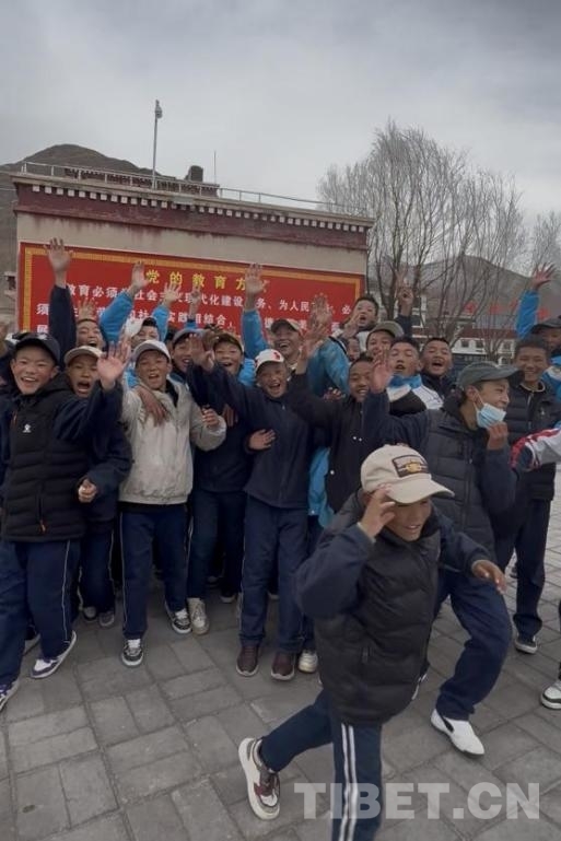 南木林縣第二中學(xué)學(xué)生面向鏡頭打招呼