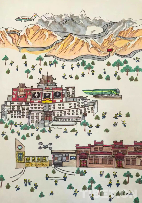 西藏那曲市索縣第二小學學生珍查尼瑪?shù)睦L畫作品《星火的雪域足跡》 圖片來源:索縣融媒體中心