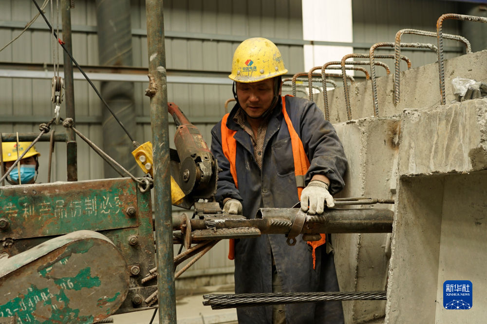 4月28日,一名工人在加西公路項(xiàng)目的預(yù)制梁場加工鋼筋。新華社記者 陳杰 攝