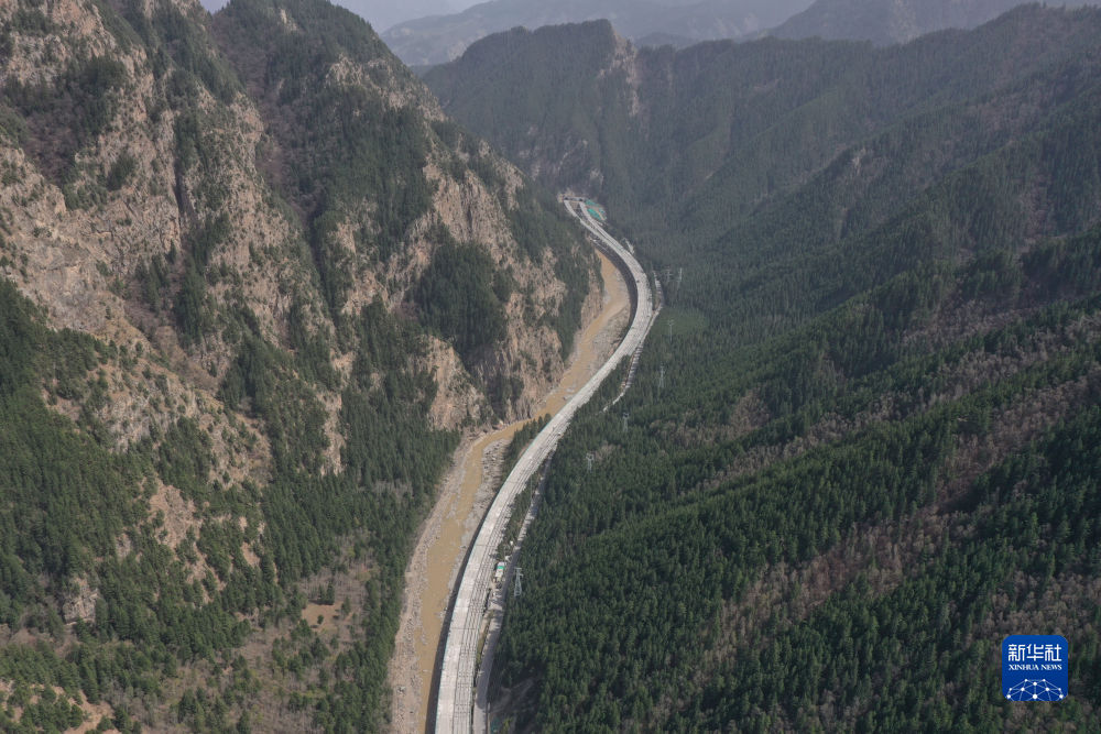 這是4月28日在青海省海東市互助土族自治縣拍攝的加西公路項(xiàng)目沿線風(fēng)景(無人機(jī)照片)。新華社記者 陳杰 攝