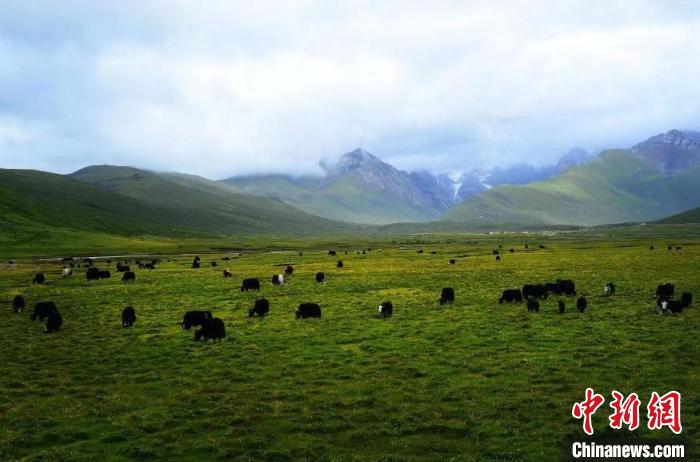 圖為果洛州境內(nèi)的草原上,牦牛群在覓食。果洛州委宣傳部 供圖