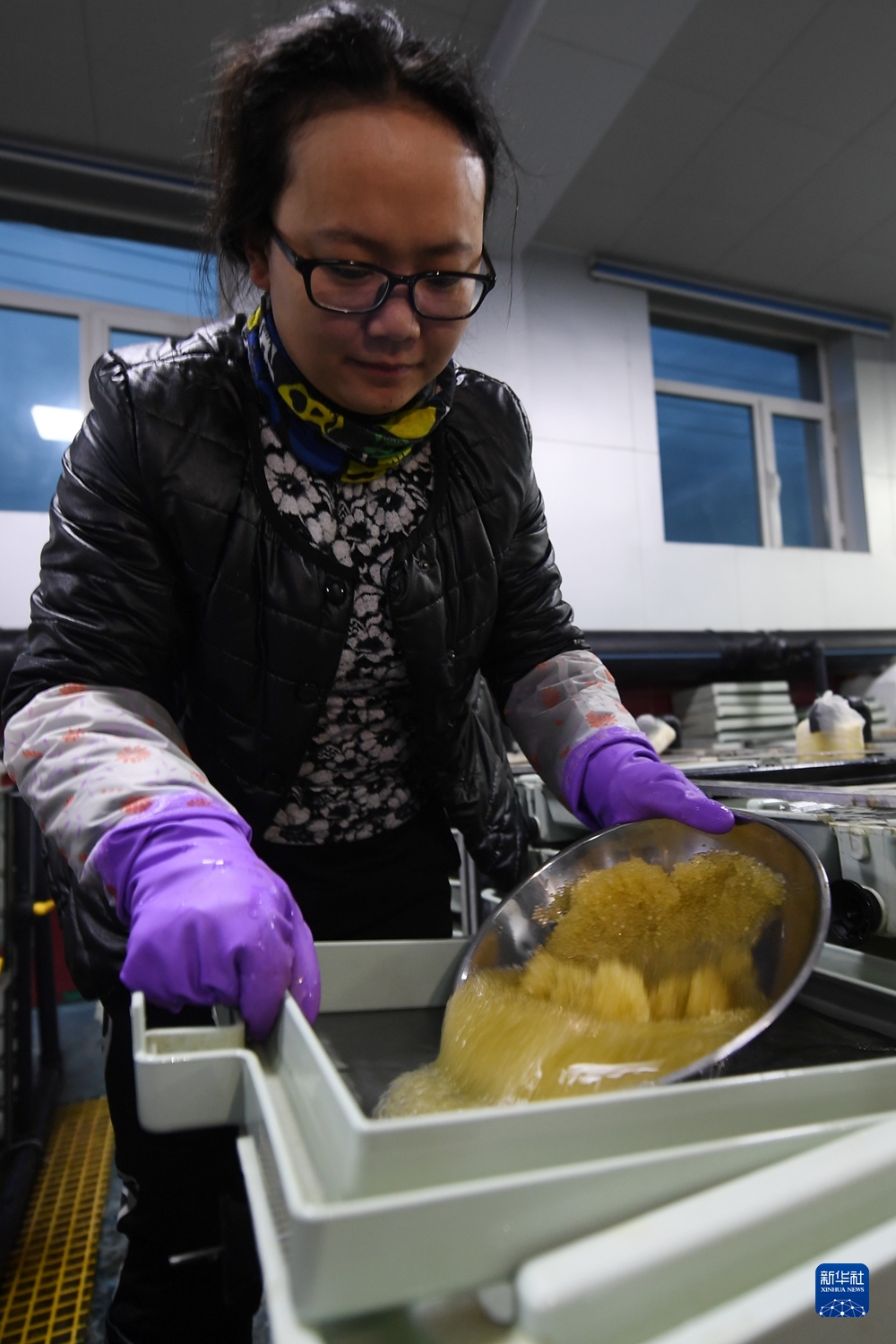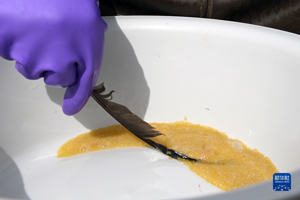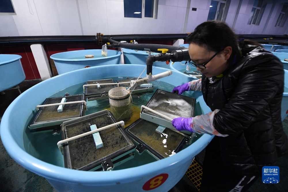 6月29日,在青海湖裸鯉沙柳河泉吉河增殖實驗站,工作人員把收集的湟魚受精卵放入孵化盒。新華社記者 范培珅 攝