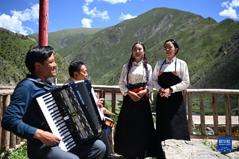 7月16日,山莊工作人員演唱原生態(tài)歌曲。新華社記者 范培珅 攝