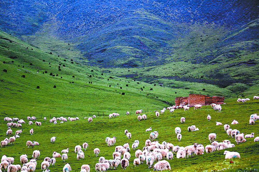 清晨,迎著朝陽,踏著甘露,吉措扎西唱著悠揚的牧歌,趕著羊群向草原深處走去。漸漸地,吉措扎西和羊群的身影消失在草原盡頭。