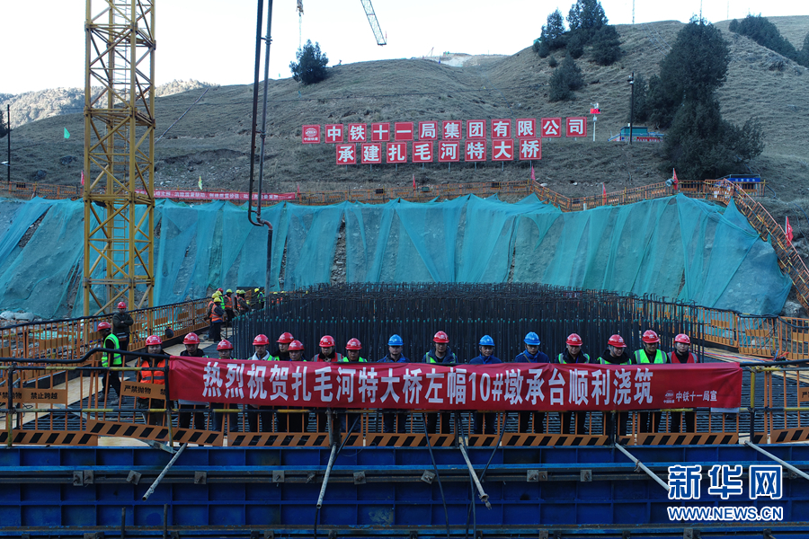 11月7日,中鐵十一局施工人員順利完成扎毛河特大橋左幅10#墩承臺澆筑。