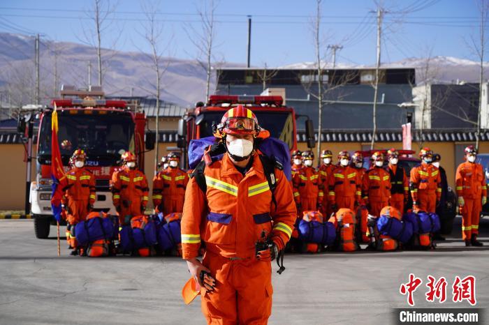 圖為消防救援力量集結(jié),做好隨時(shí)出動準(zhǔn)備?!∏嗪O拦﹫D