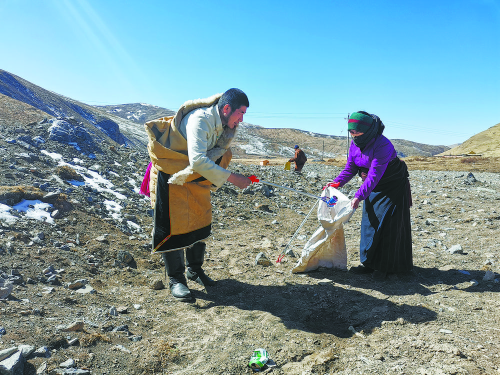 越來越多的人自發(fā)加入到義務撿拾垃圾保護環(huán)境的行動當中,這其中就包括扎西當智的兒子才讓南杰和今年65歲的加肉老人。