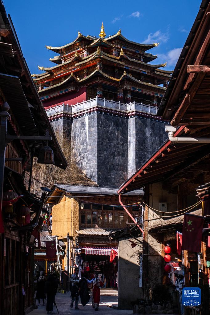 3月8日,游人在獨(dú)克宗古城參觀游玩。新華社記者 胡超 攝