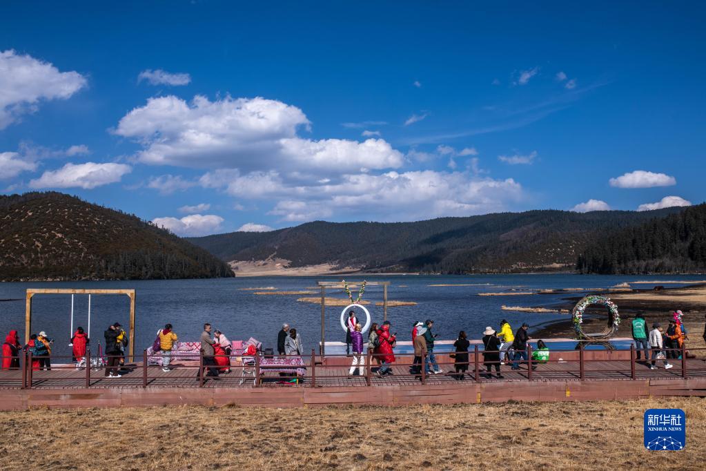 3月9日,游人在普達(dá)措景區(qū)參觀游玩。新華社記者 胡超 攝